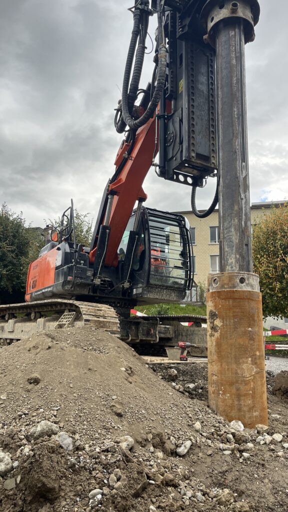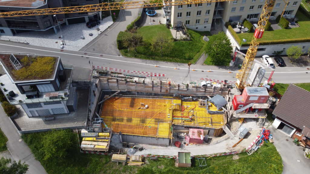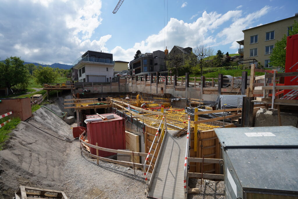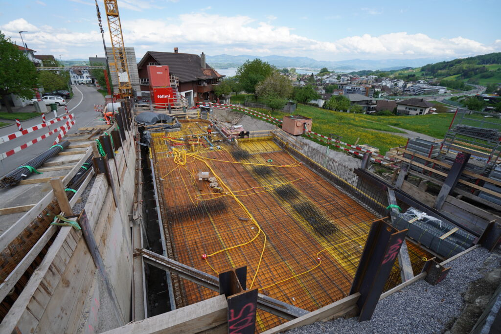 In Wollerau, an erstklassiger Lage mit traumhaftem Ausblick auf den Zürichsee, entsteht ein modernes Mehrfamilienhaus. Die Föllmi AG übernimmt neben dem Neubau auch den Abbruch des Altbaus sowie den Aushub der Baugrube. Das neue Gebäude wird mit einer umweltfreundlichen Erdsonden-Wärmepumpe und einer Photovoltaikanlage zur nachhaltigen Energiegewinnung ausgestattet. Als Baugrubensicherung dient eine gebohrte Rühlwand, welche mittels Selbstbohranker rückverankert und teilweise diagonal abgespriesst wird.