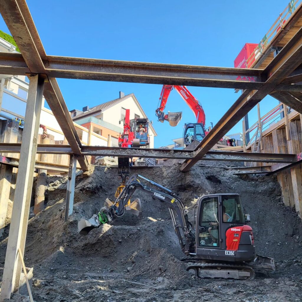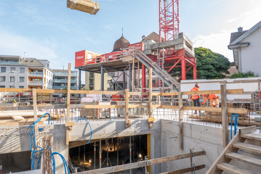 Die Acrevis Bank AG baut in Lachen SZ Ihre neue Bankfiliale. Es entsteht ein fünfgeschossiges Gebäude, im Erdgeschoss befindet sich die Bank, darüber entstehen sieben Wohnungen und unter dem Neubau entsteht eine zweigeschossige Garage.