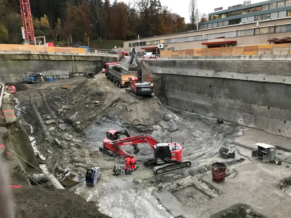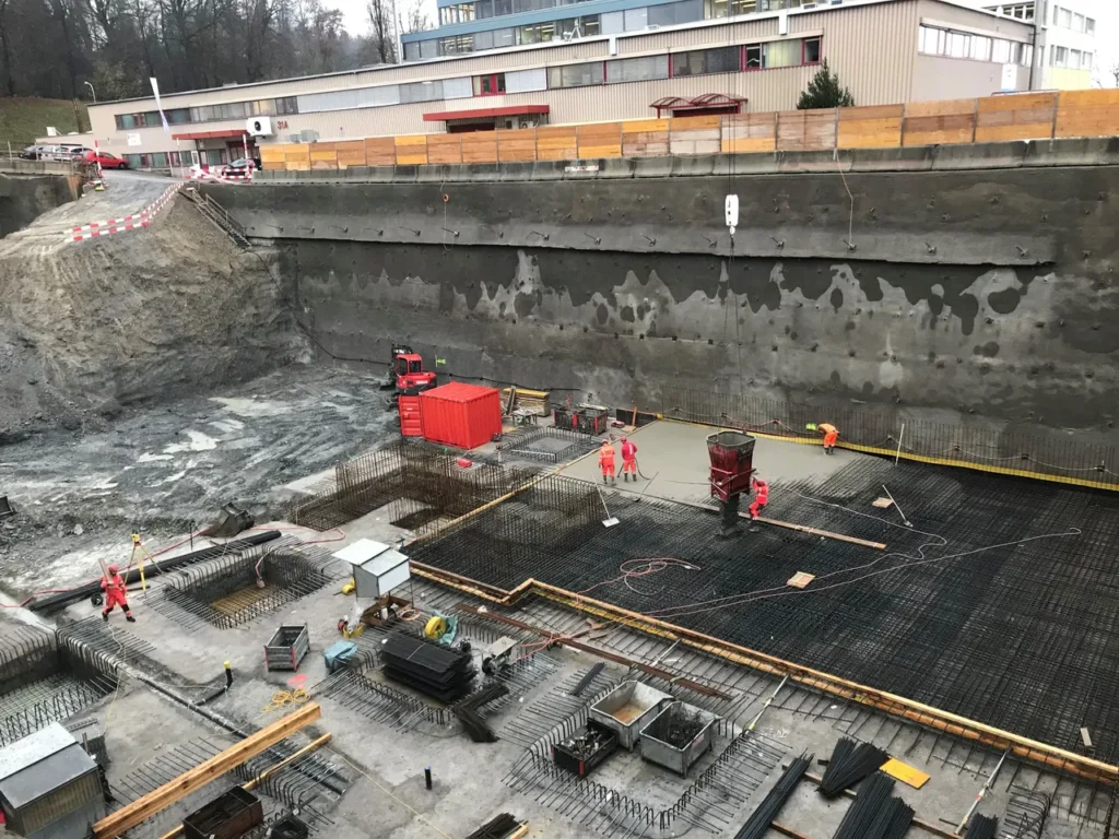 Auf dem Tuwag Areal in Wädenswil wird sich neu das Departements Life Sciences und Facility Management der Zürcher Hochschule für Angewandte Wissenschaften ZHAW befinden. Das ganze Gebäude hat einen Blick auf den See und sollte als Technika, Labore, Unterrichts, Arbeitsplätze und Sozialräume des Instituts für Lebensmittel und Getränkeinnovation dienen. Im Erdgeschoss werden alle Produktionsanlagen und Technika Platz nehmen und in den restlichen Stöcke, befinden sich alle Labore, Unterrichtsräume und Büroräume. Das Gesamte Volumen des Tiefbau umfasst ca. 33’000m3 Aushub, wovon ca. 20’000m3 nur Sprengfels beträgt. Die Baugrubentiefe liegt bei 12m. Geplant ist ein Gebäude von 3 Untergeschossen, Erdgeschoss sowie 1.-4. Obergeschoss.