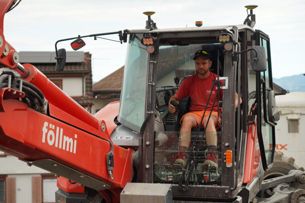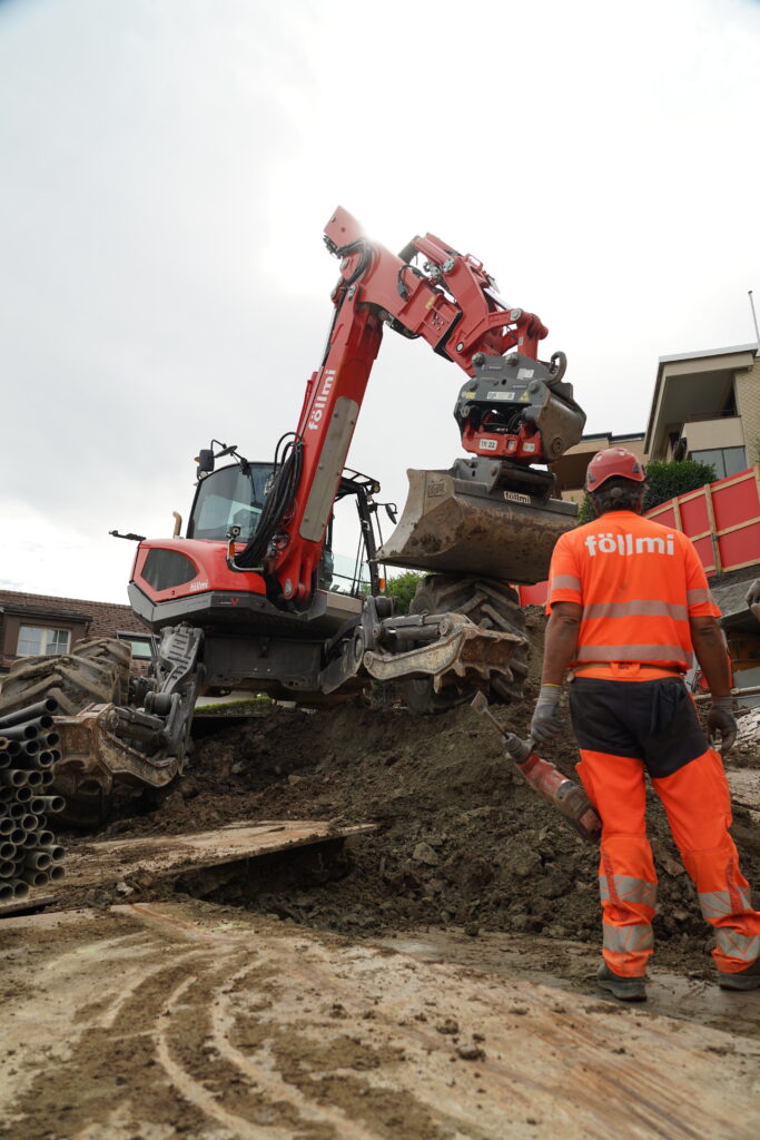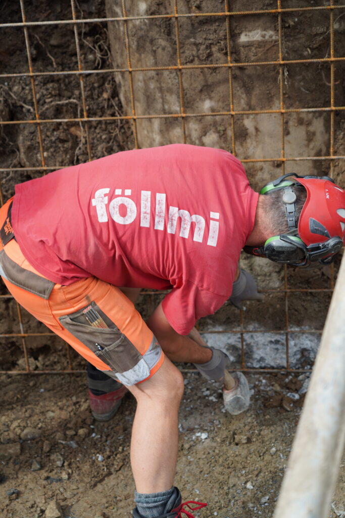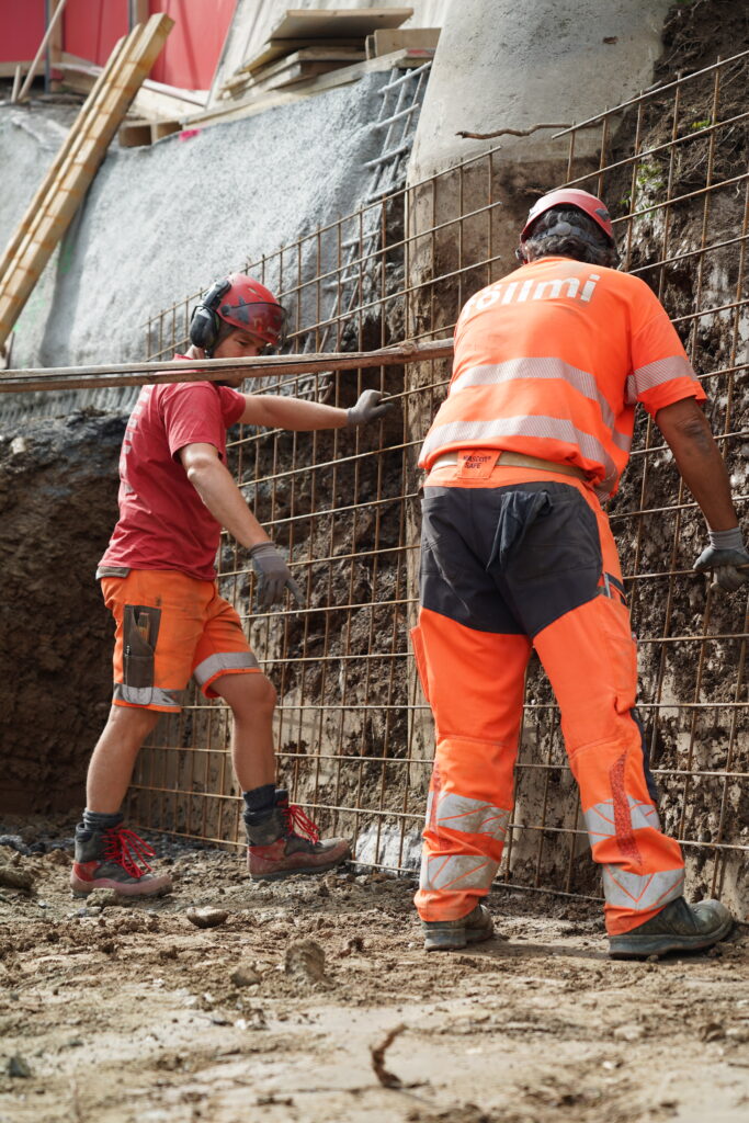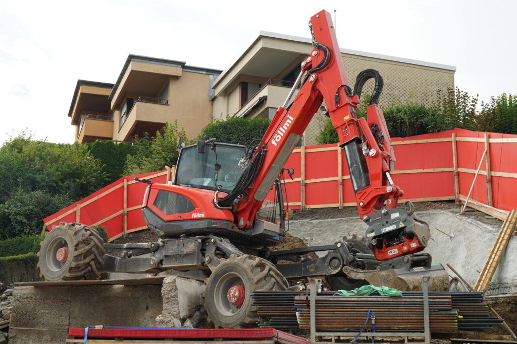 Die Baugrubenwände werden mit bis zu 14m langen vorgespannten sowie schlaffen Ankern gesichert. Wenn alles nach Plan läuft, sollten die Aushubarbeiten bis Ende Oktober abgeschlossen sein und der Neubau kann starten.