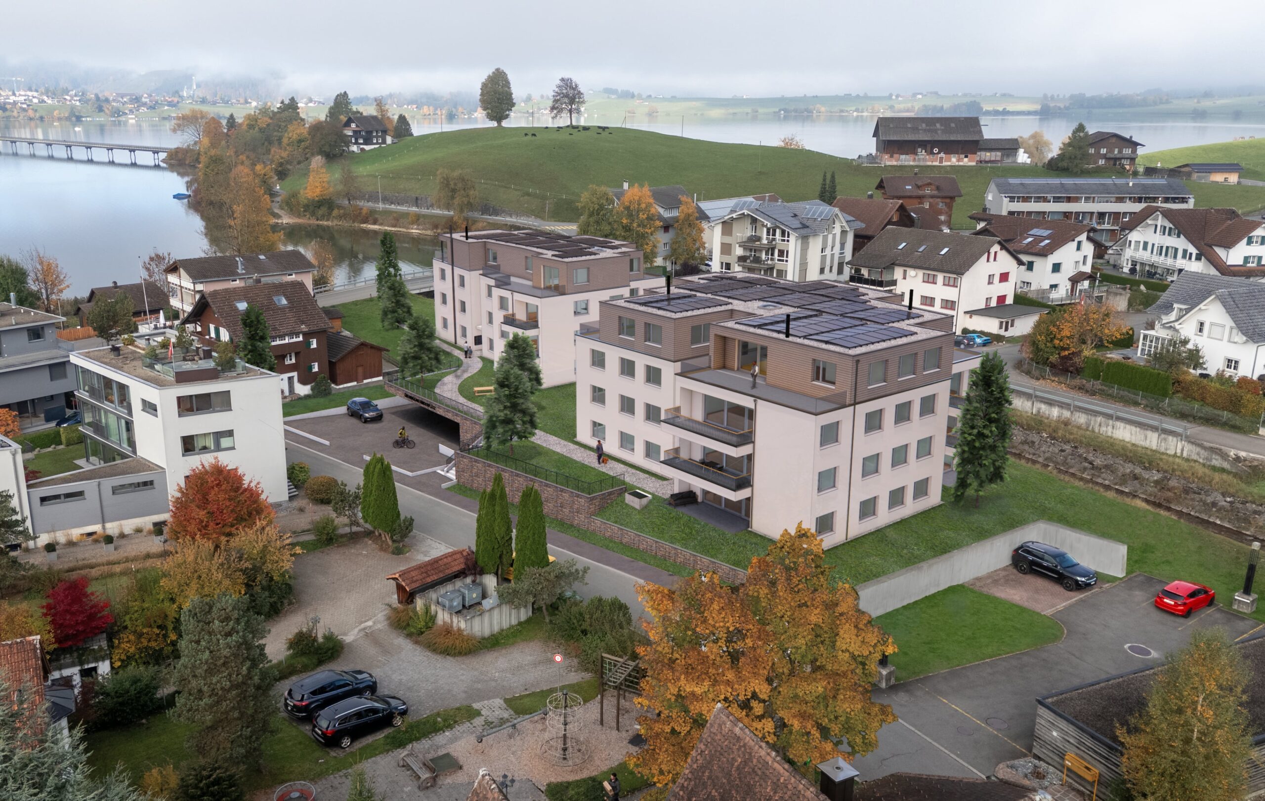 In Willerzell entstehen in unmittelbarer Nähe des Sihlsees derzeit zwei Mehrfamilienhäuser mit insgesamt 25 Mietwohnungen. Die beiden Gebäude verfügen über ein Untergeschoss sowie drei Obergeschosse inklusive Attikawohnungen.