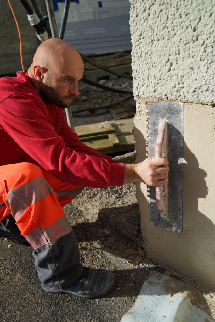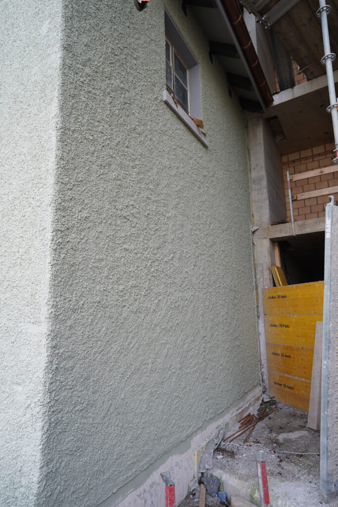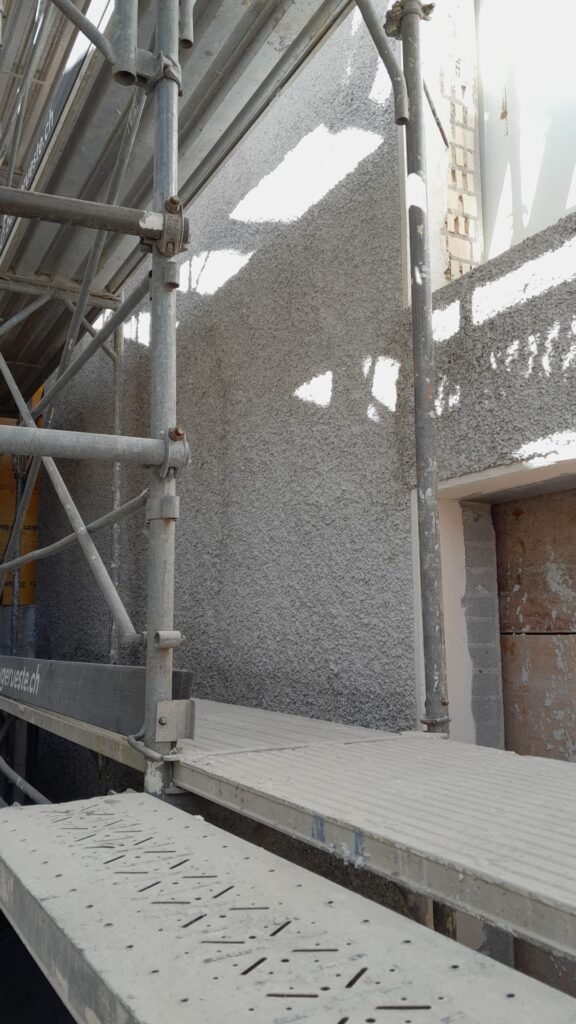 Beim Projekt Umnutzung der Siloliegenschaft zwischen der Bahnlinie und der Oberdorfstrasse gibt es neben dem Neubau des Hochhauses auch den Umbau der alten Scheune. Bei der Scheune durften wir unteranderem die Fassade sanieren und den Kellenwurf-Fassadenputz ausführen. Diese traditionelle Technik erfordert viel Handarbeit, Erfahrung und Präzision. Der Kellenwurf wird heute nur noch selten angewendet. Wir freuen uns, dass wir unser Know-how bei solch besonderen und herausfordernden Arbeiten einbringen dürfen.