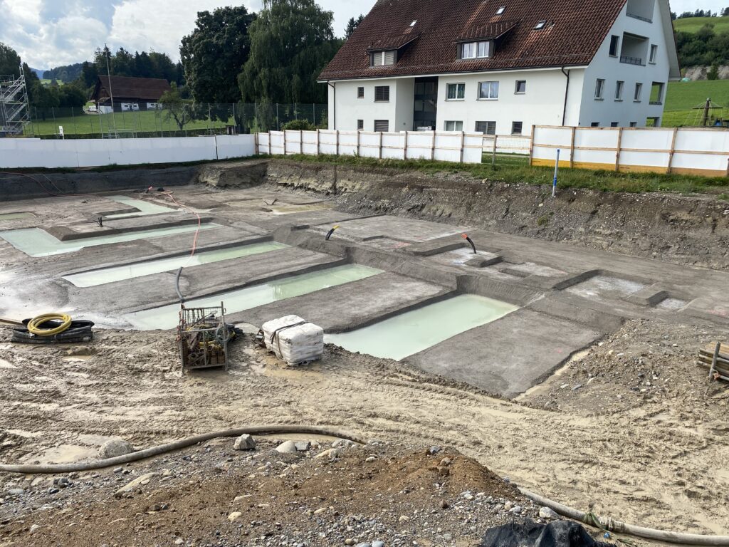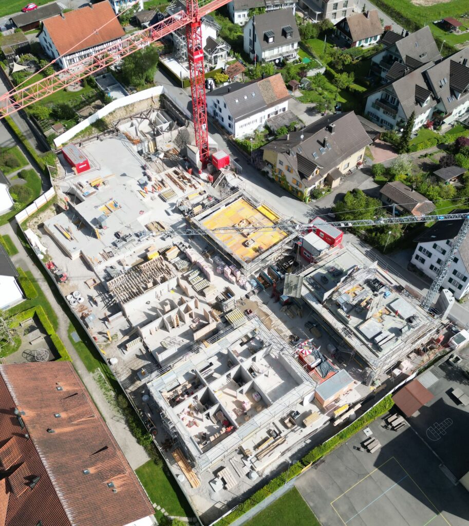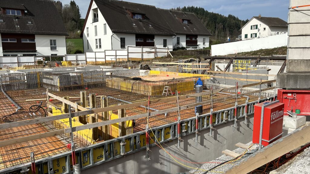 In Horgen entstehen 15 Reiheneinfamilienhäuser mit grosszügigen Grundrissen und schönen Gärten. Eine Tiefgarage mit Zugängen zu allen Häusern wird im Untergeschoss erstellt. Die Einfamilienhäuser werden in konventioneller Bauweise gebaut. Die Geschosstreppen werden vorfabriziert und vor Ort während der Bauphase versetzt. Die Balkone werden in Holzbau erstellt und verkleidet.