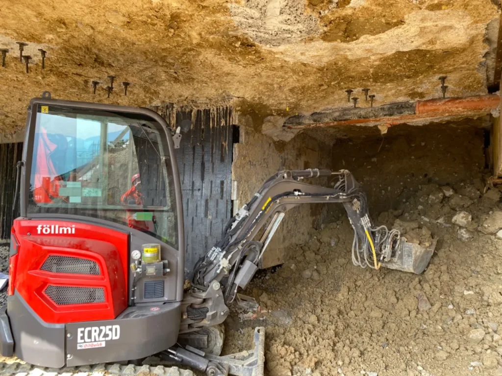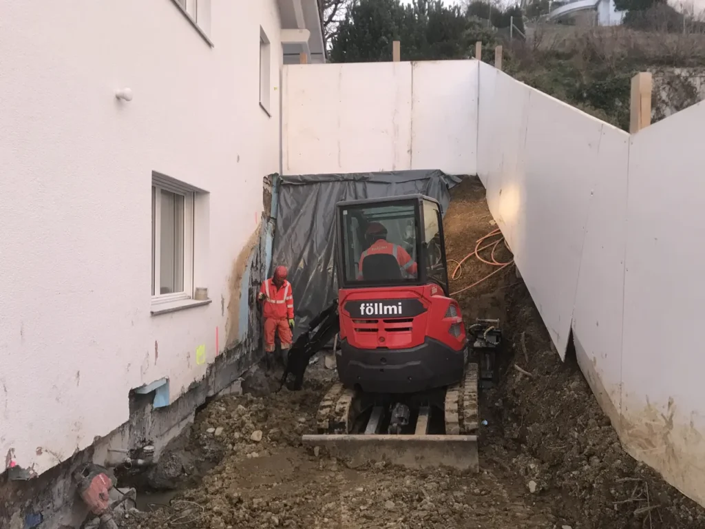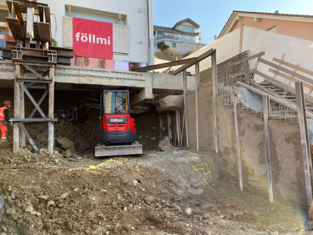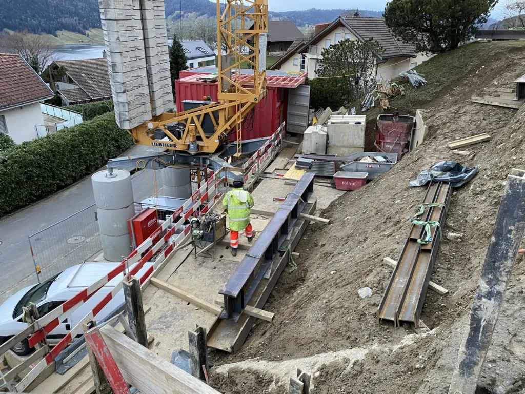 In der Hanglage in Oberägeri entsteht eine Erweiterung des bestehenden EFH mit zwei Untergeschossen. Die zwei neuen Geschosse sollen mittels einem neuen Lift in das bestehende Gebäude erschlossen werden. Das EFH bleibt während er Bauzeit bewohnbar. Als Baugrubenabschluss zur Nachbarsgrenze ist eine Rühlwand geplant. Während den Aushubarbeiten wird das Gebäude stetig unterfangen. Die ganzen Arbeiten werden vom Geometer auf Setzungen überwacht.